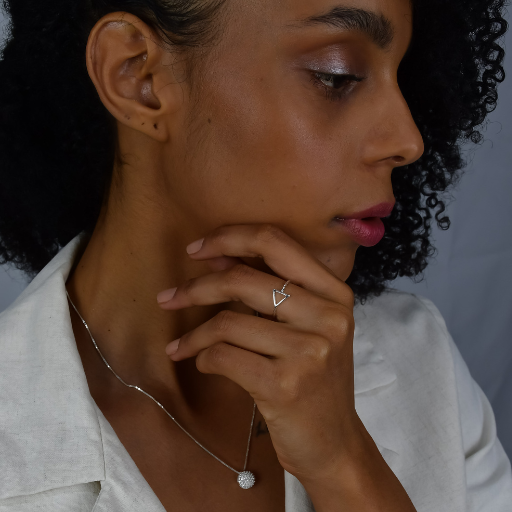 O Anel de Prata 925 Triângulo destaca-se pelo seu design elegante, perfeito para quem aprecia a beleza das formas simples, atemporais e a geometria sagrada.